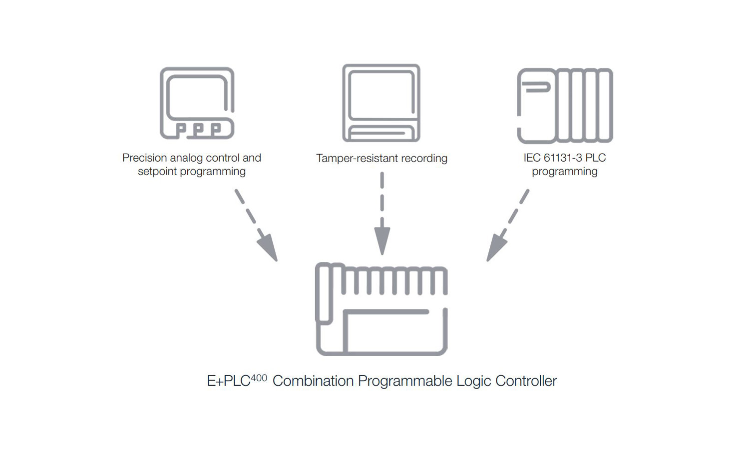 User data can be exchanged to/from external devices using XML or CSV format. E+PLC products support Modbus communication to enable connection to other instruments and controllers.