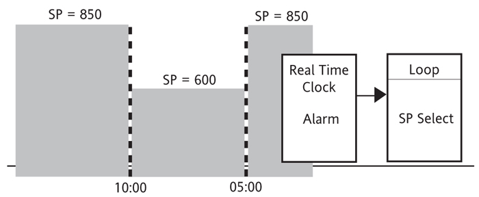 Using the intelligence of modern control systems it is possible to automate out of hours setpoint control for thermal processing equipment. In the example shown below the control systems understands the dynamics of the furnace and can recognize the power required to maintain the standby setpoint and the power required to achieve the operating setpoint.