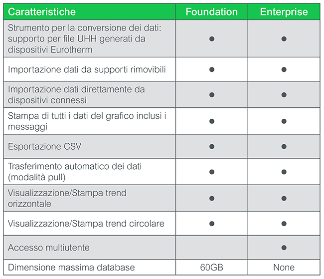 Eurotherm Data Reviewer è disponibile in due varianti, Foundation Edition per piccole reti di strumenti indipendenti (stand-alone), ed Enterprise Edition, una versione basata su server, con dimensione illimitata del database e accesso multiutente.