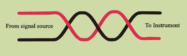 Twisted pair signal wiring: This acts by successive twisted loops canceling each other’s pick-up of magnetically induced voltages (reduction of mutual inductance M).