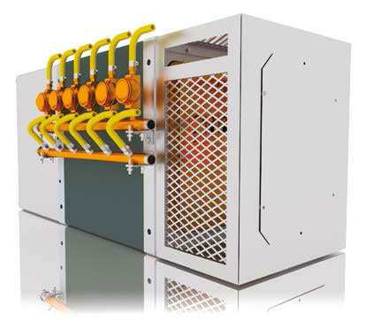 Land is expensive and available space for system upgrades can be a problem in older facilities. A traditional boosting solution needs a large electrical transformer, which is either oil filled, or air cooled by air conditioning units. Both types need to be situated in an external room, away from the furnace for safety and take up a lot of factory floor space.
